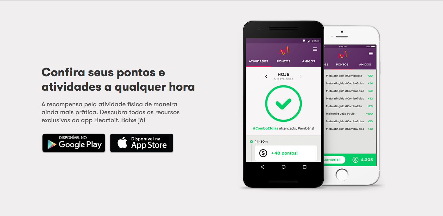 - Para baixar em seu aparelho com sistema operacional Android é necessário que seu celular possua no mínimo o Android 4.4 KitKat. Basta buscar por "Heartbit" na Play Store ou clicar aqui para ser redirecionado.